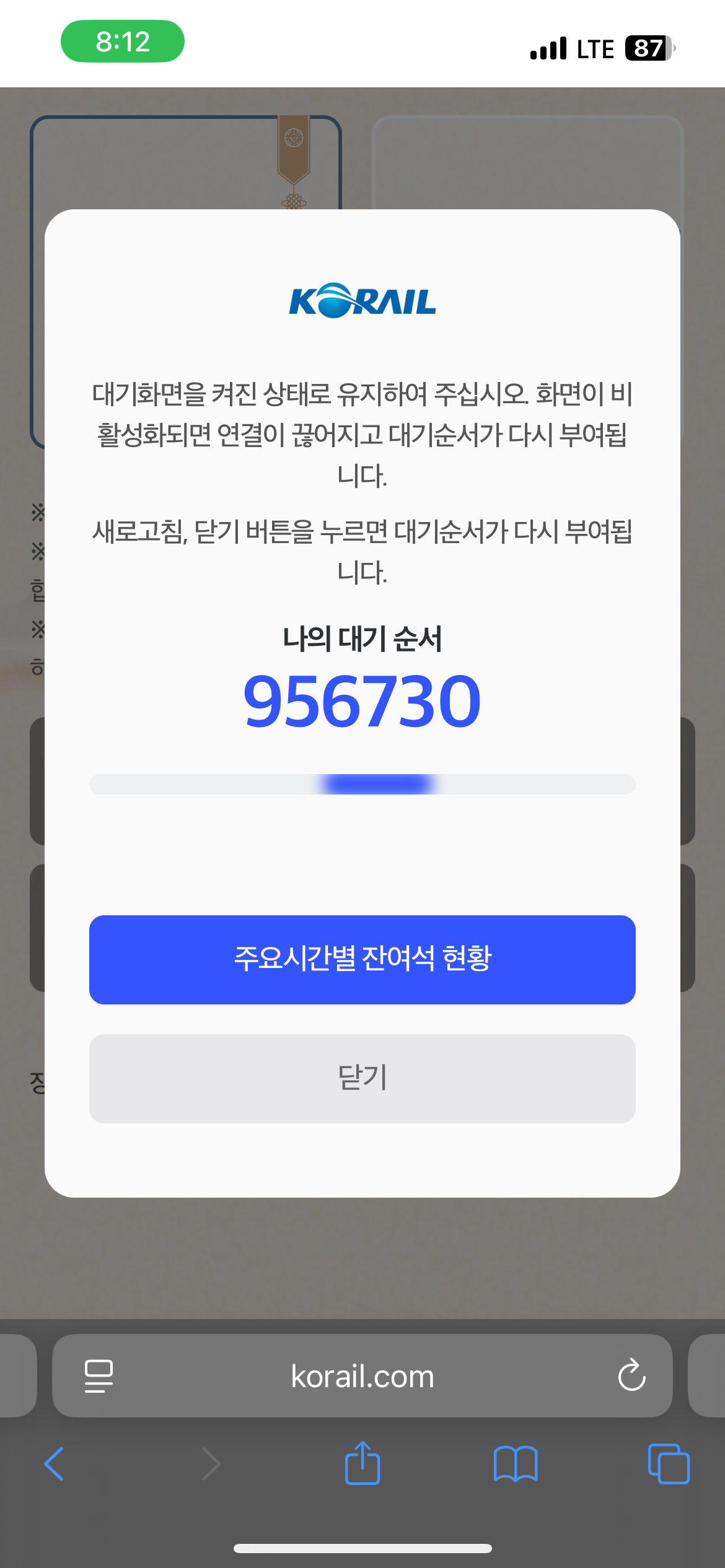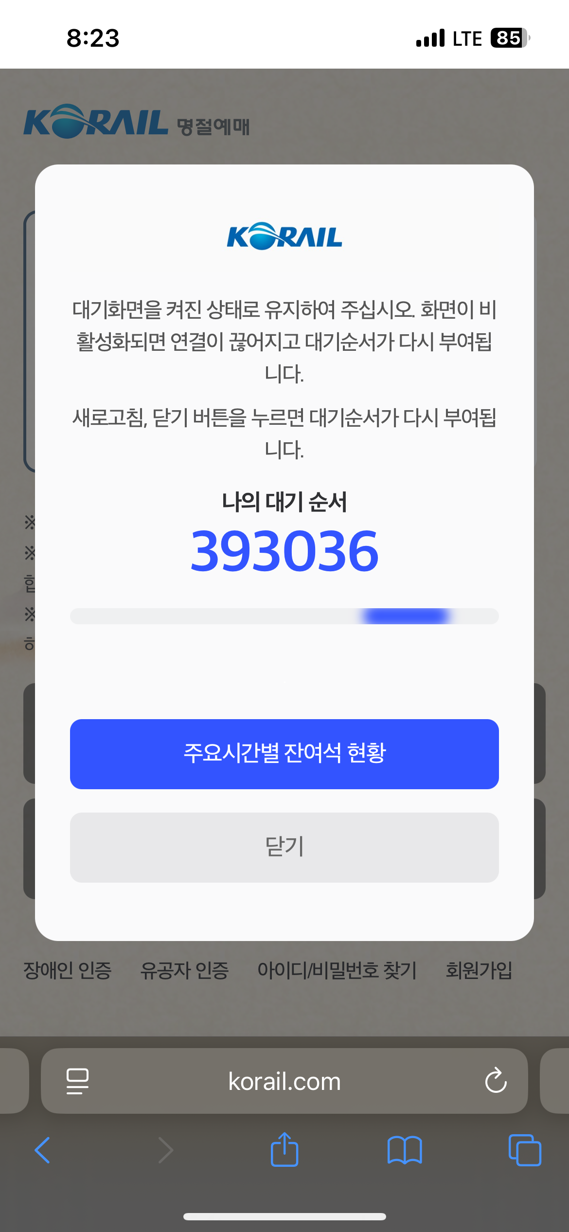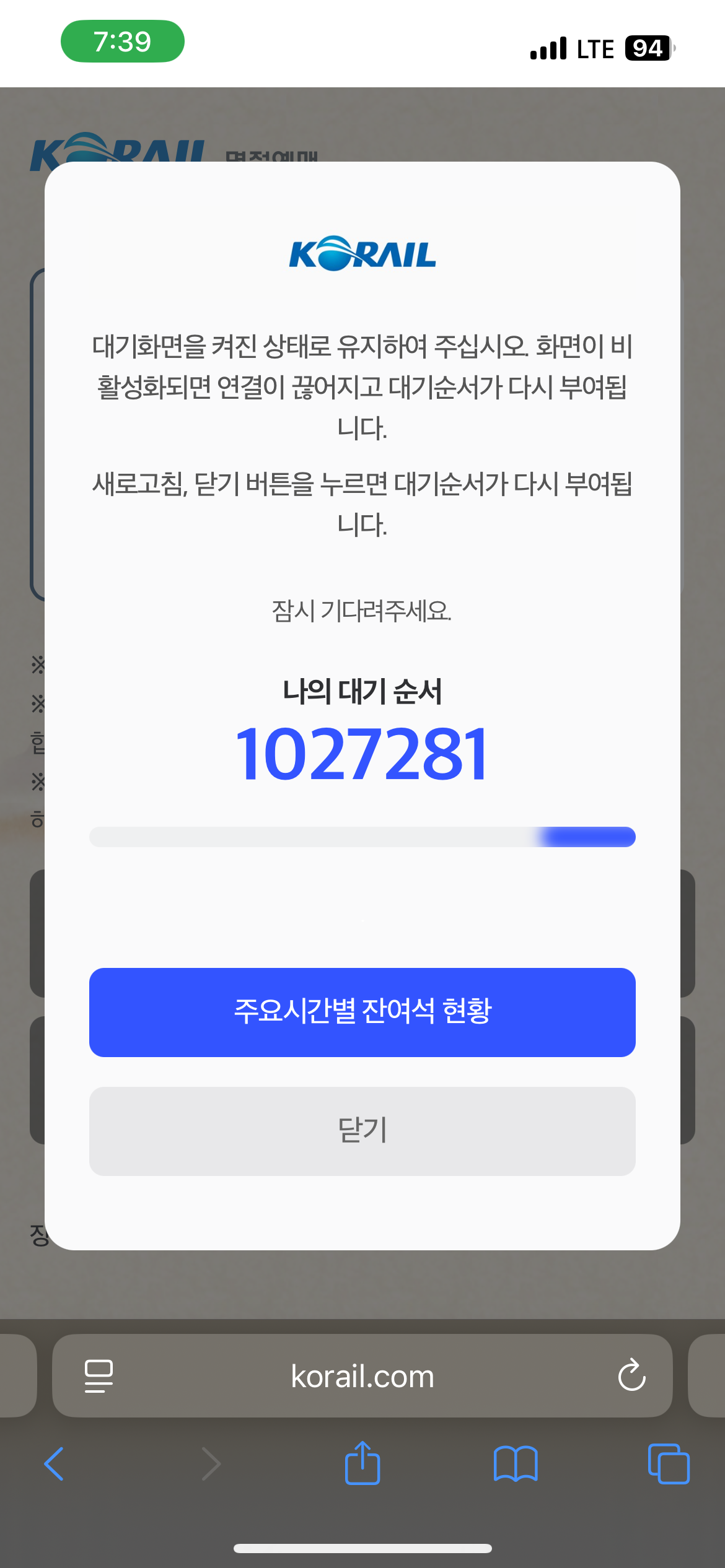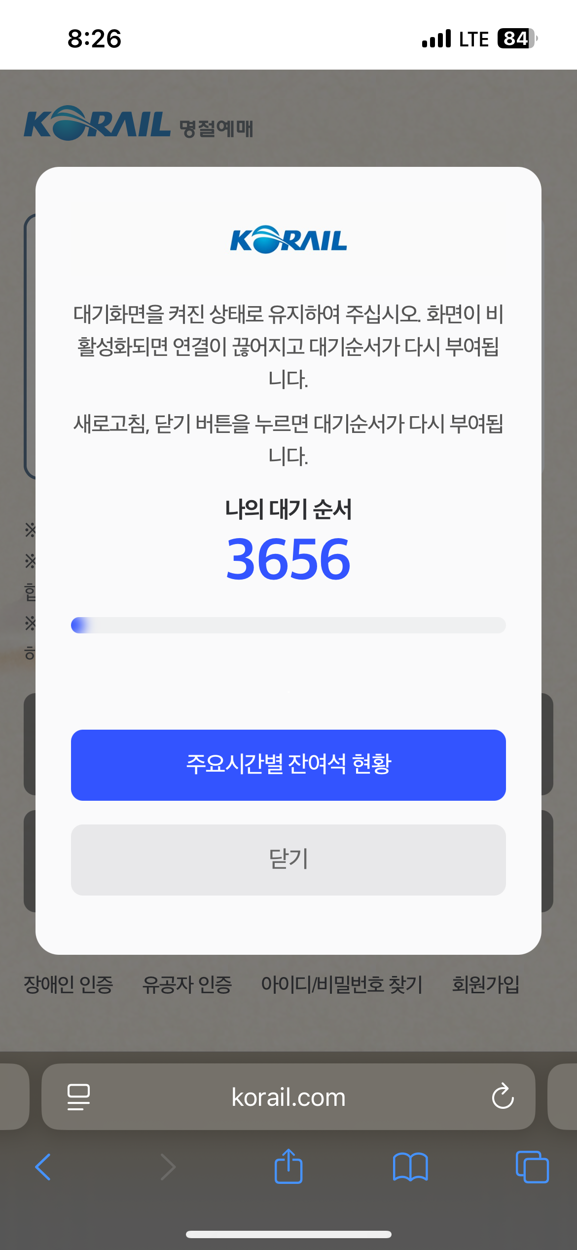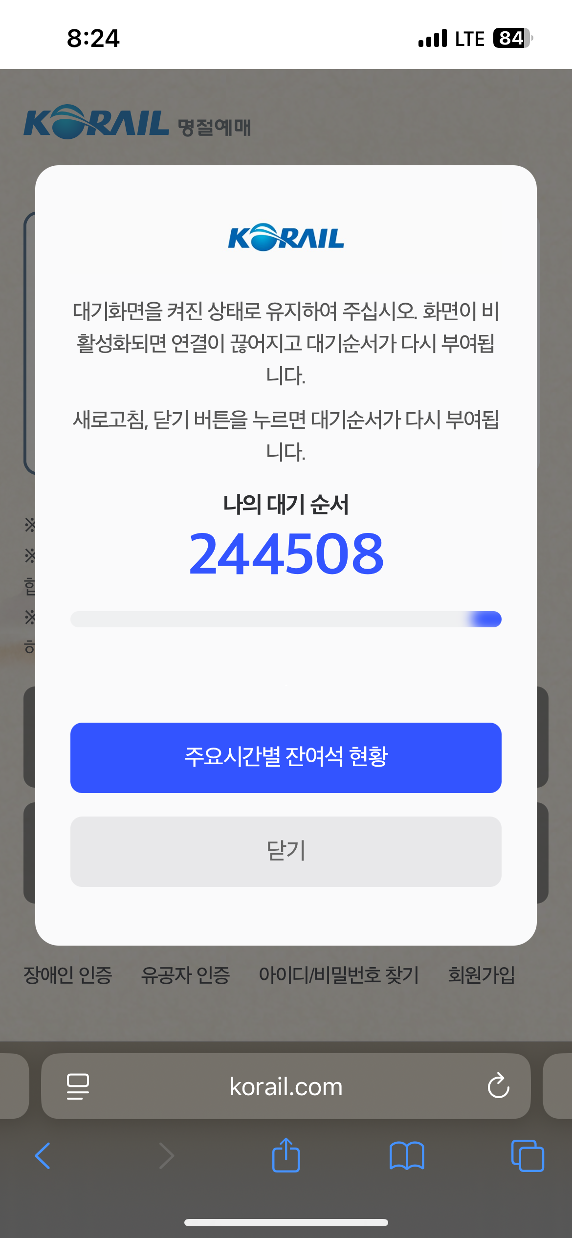 ▼ 대기시간 총 1시간 30분 소요 후 예약창이 나왔지만 튕겨져 다시 대기 순서창으로 이동 ▼