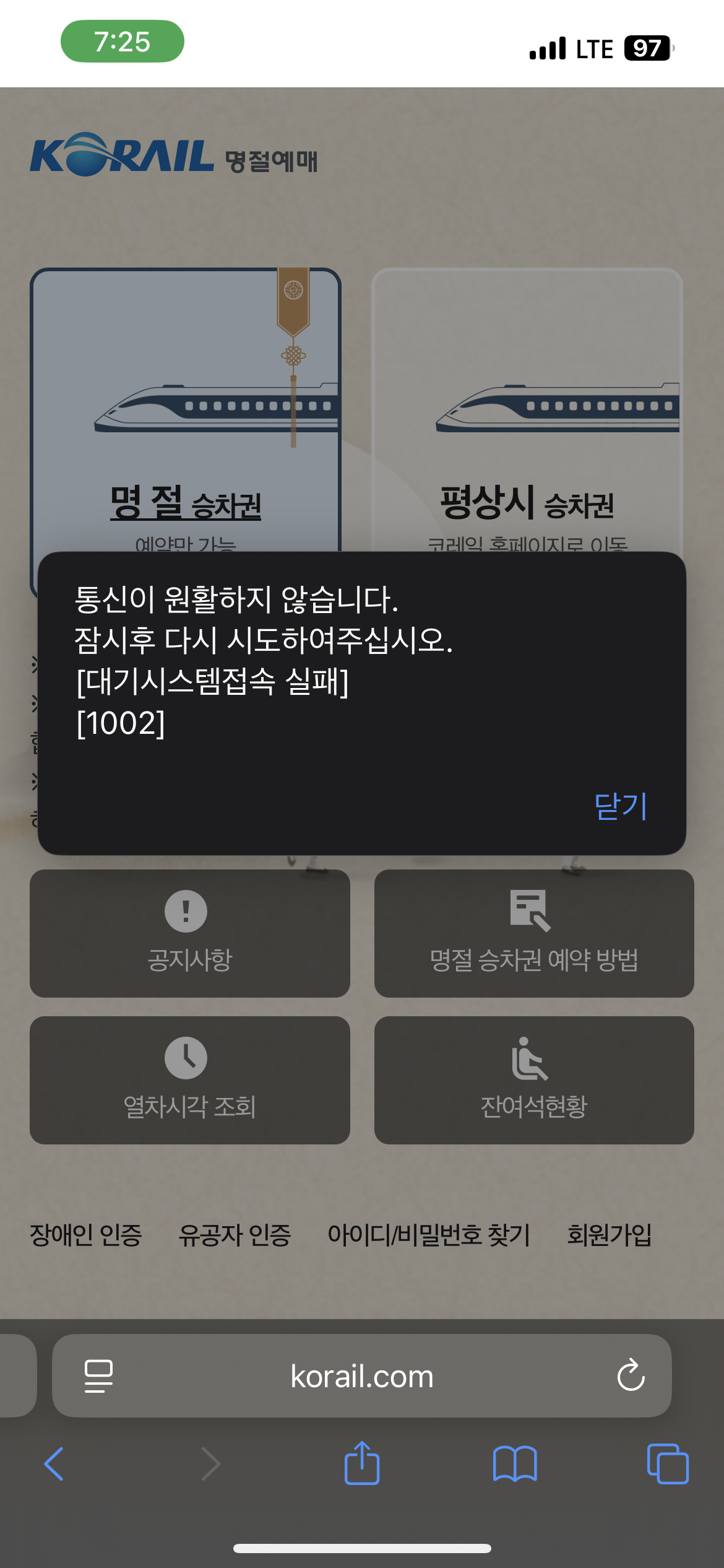 코레일은 사전에 추석 예매 일정을 공지했지만, 접속자가 몰리자 서버가 원활하게 작동하지 못했다. 대기 페이지와 오류 메시지가 반복되며, 일부 이용자는 결제 과정에서 강제 로그아웃되는 불편을 겪었다. 이는 단순한 수요 증가만으로 설명하기 어려운 시스템적 한계라는 평가가 나온다.