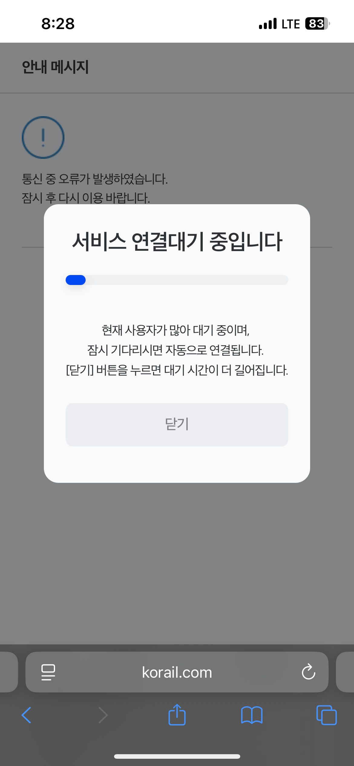 ▼ 대기하는 내내 오류발생 창이 뜨며, 결국 매진된 상태로 확인 ▼